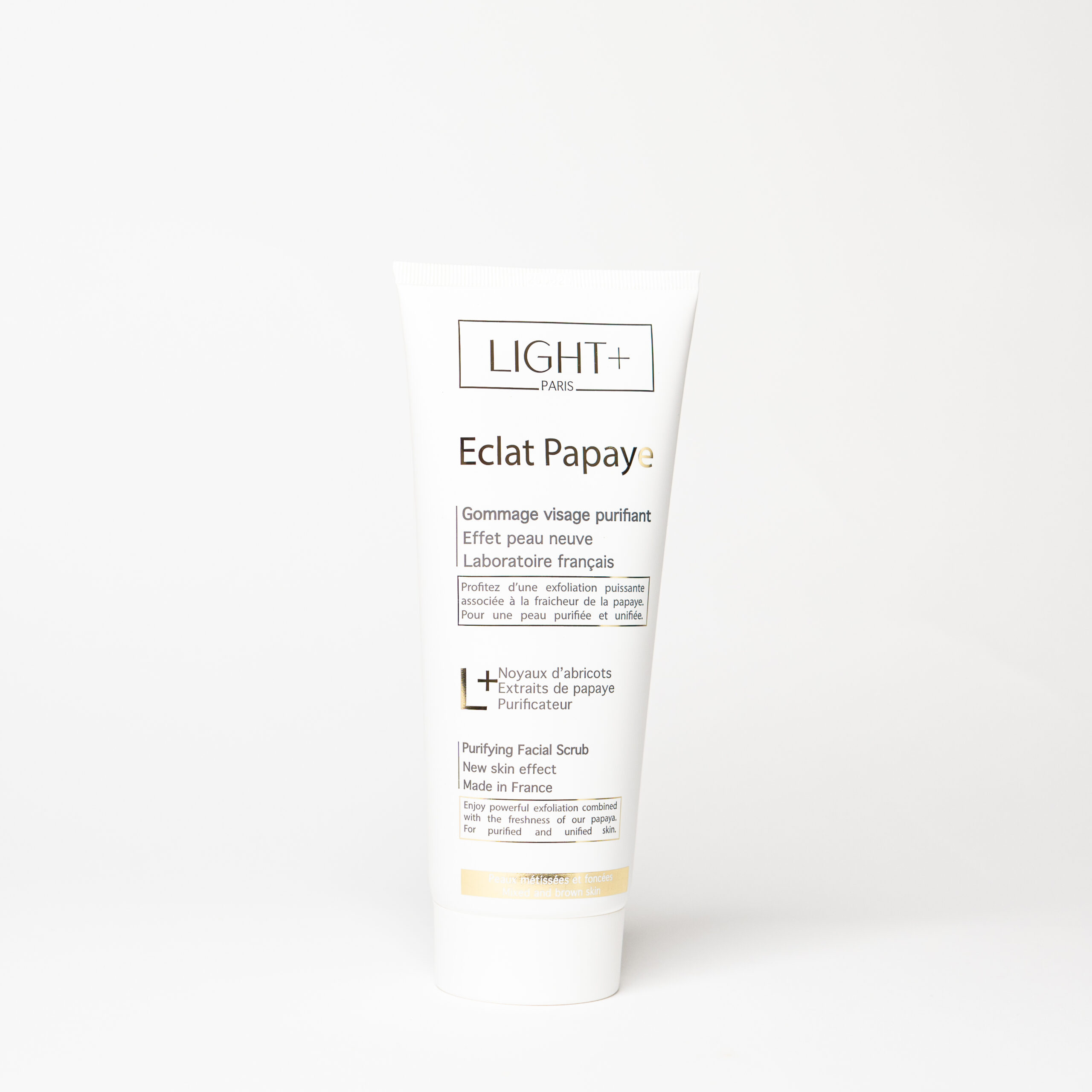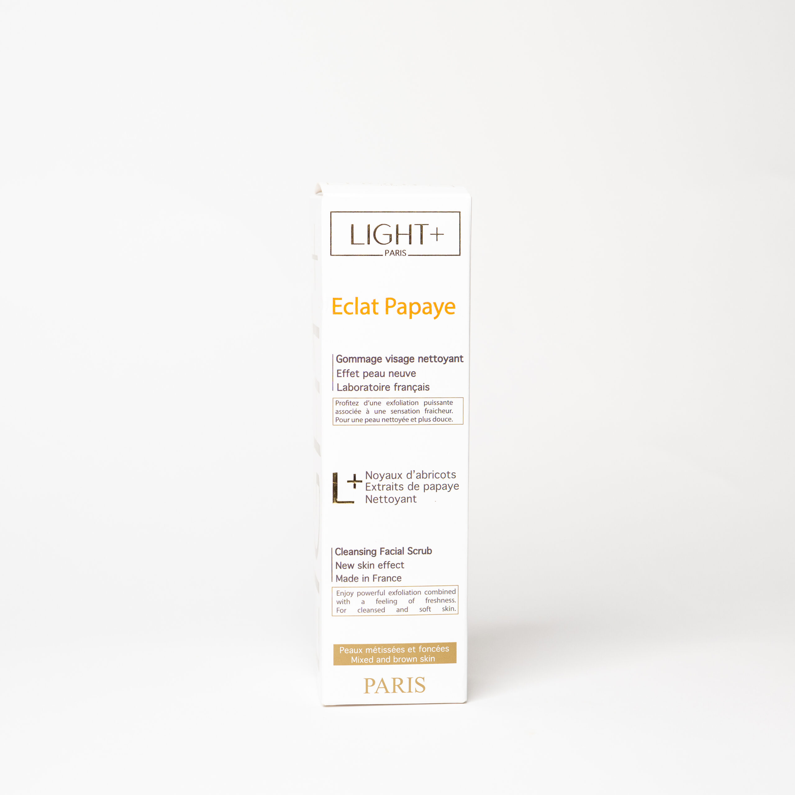 Offrez à votre peau un véritable coup d’éclat avec le Gommage Visage Éclat Papaye de Light+ Paris. Sa formule innovante, élaborée en laboratoire français, associe les noyaux d’abricots exfoliants aux extraits de papaye purifiants pour une peau douce, lisse et lumineuse.